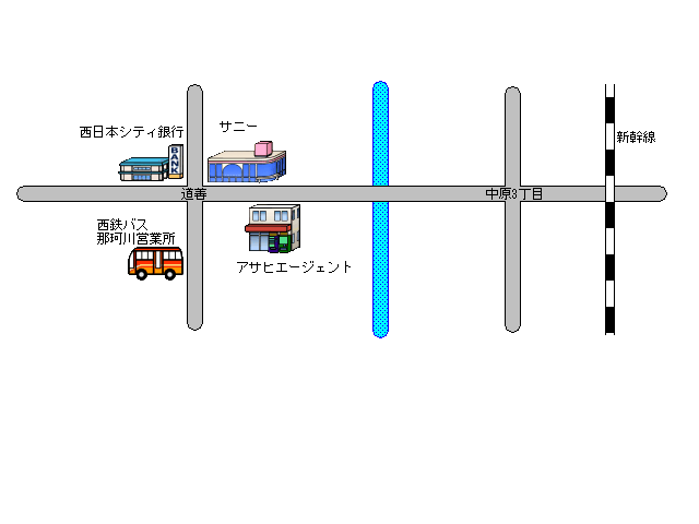 福岡銀行「那珂川支店」と「アコム」の間にあります。